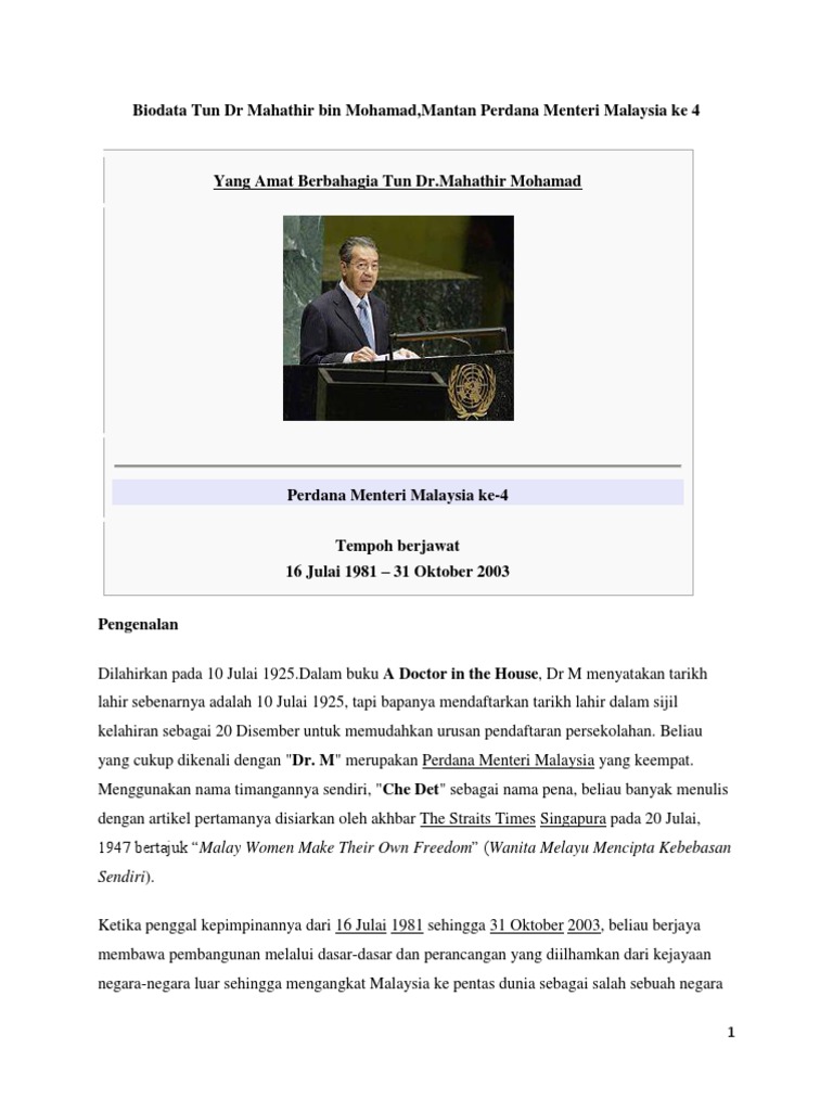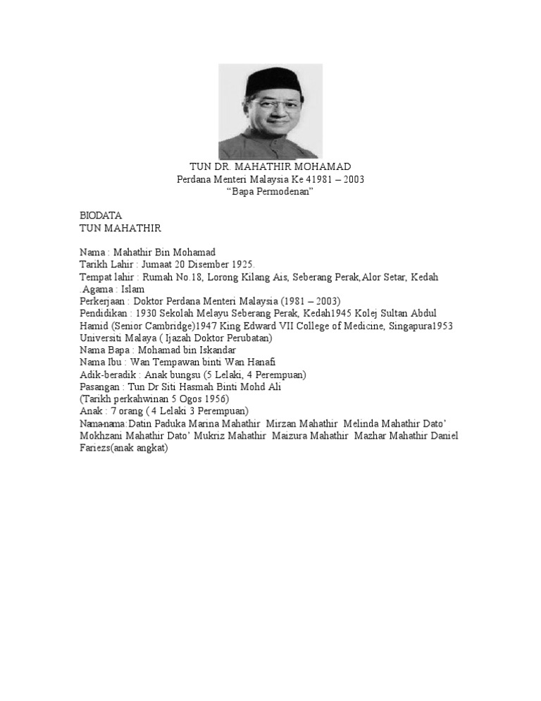Biodata Tun Dr Mahathir Bin Mohamad Pdf